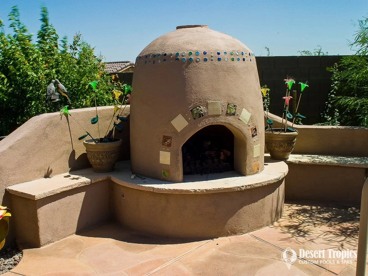 Add warmth and elegance to your pool with fire features. Desert Tropics Custom Pools designs fire pits, bowls, and features that elevate your outdoor space.