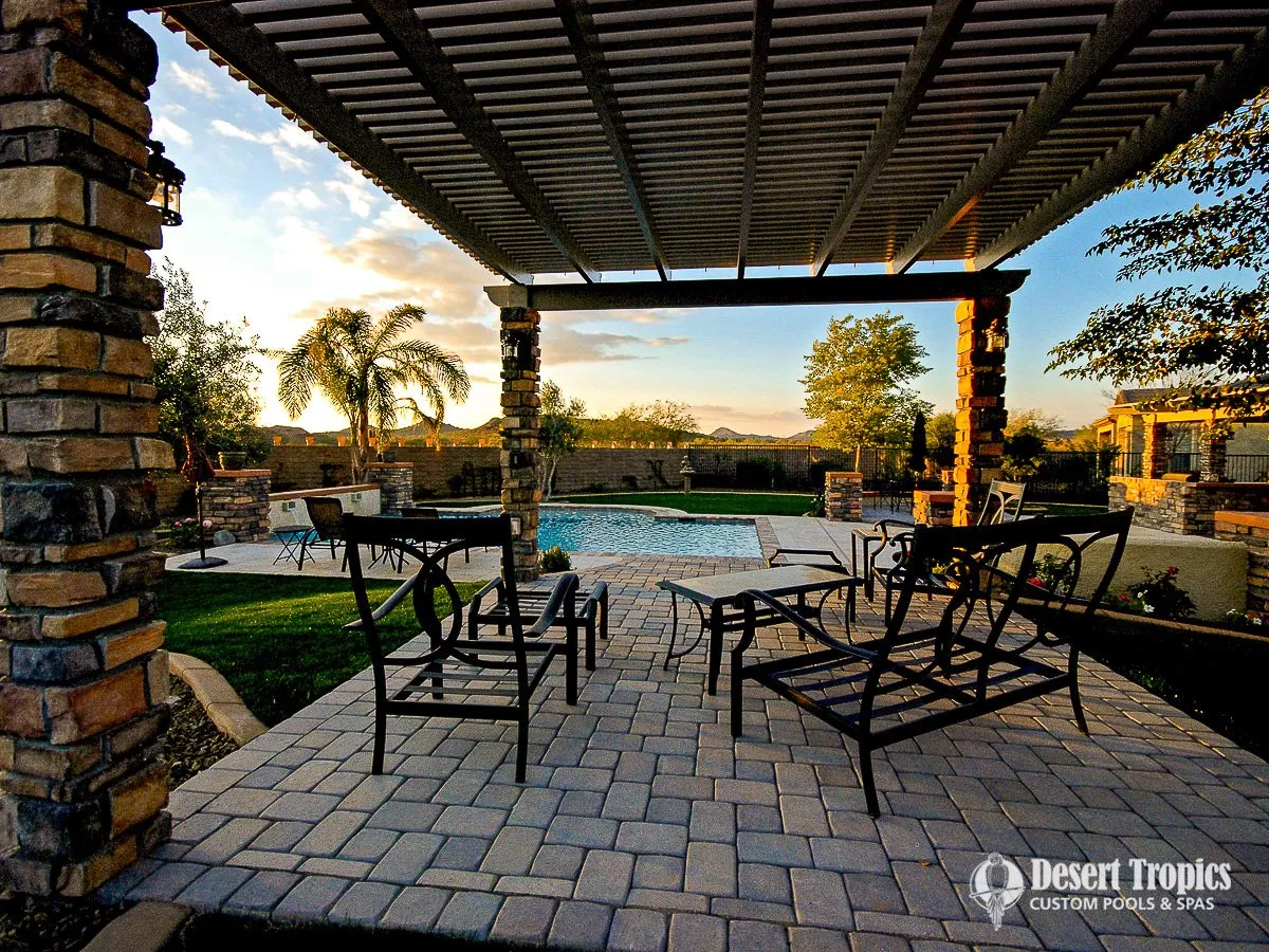 Enhance your pool with custom structures like pergolas, cabanas, and seating areas. Desert Tropics Custom Pools creates functional and beautiful outdoor spaces