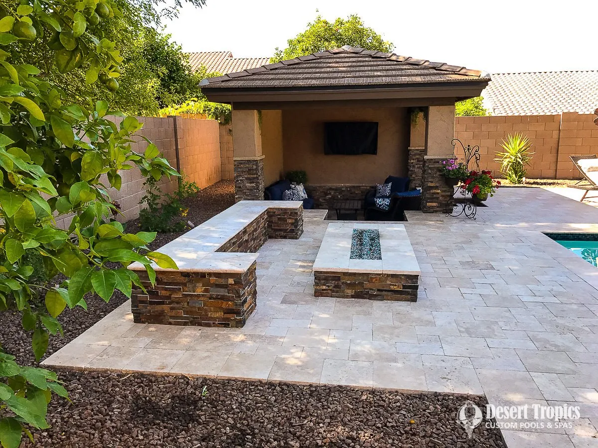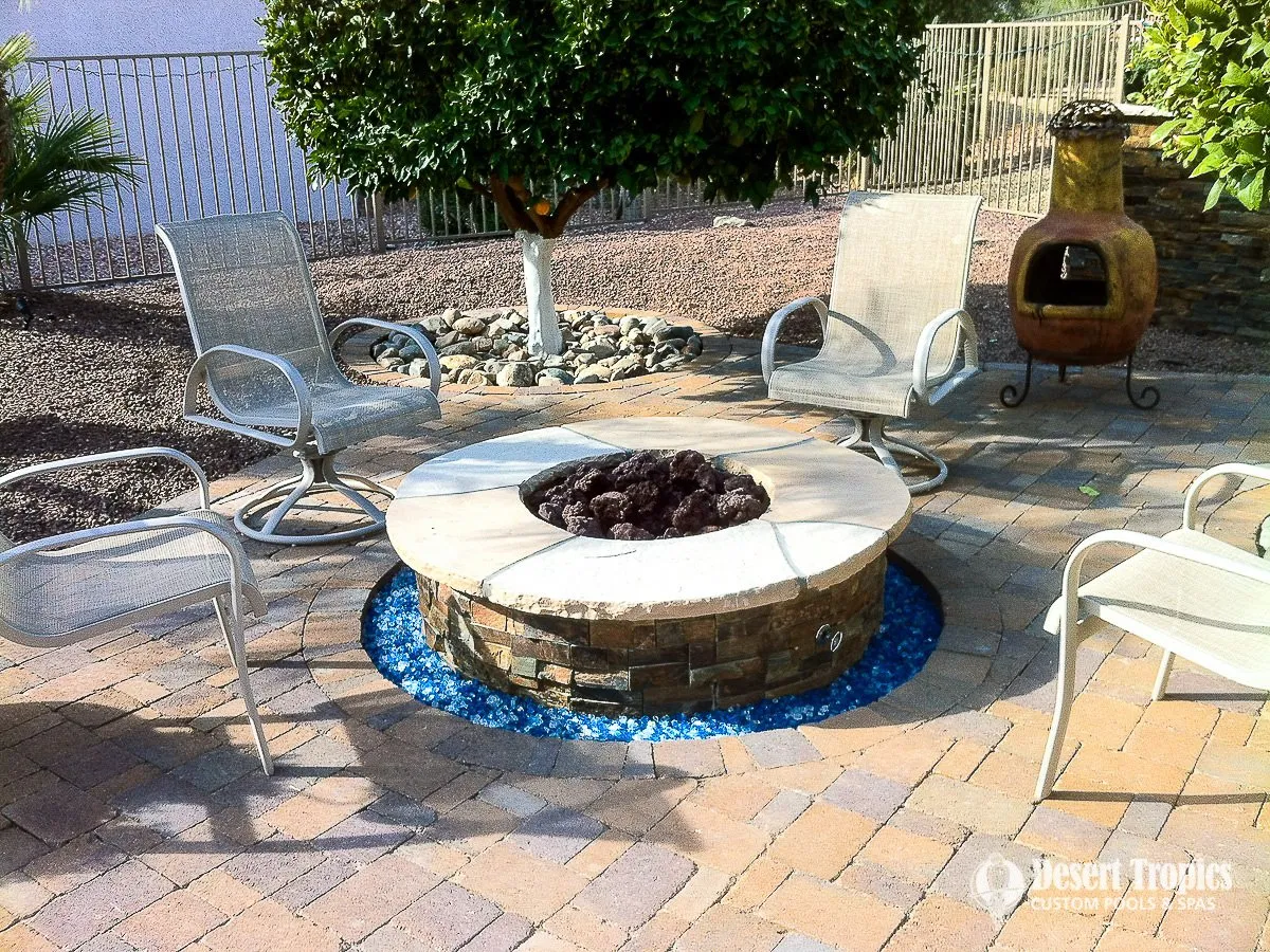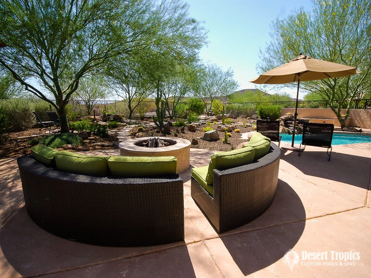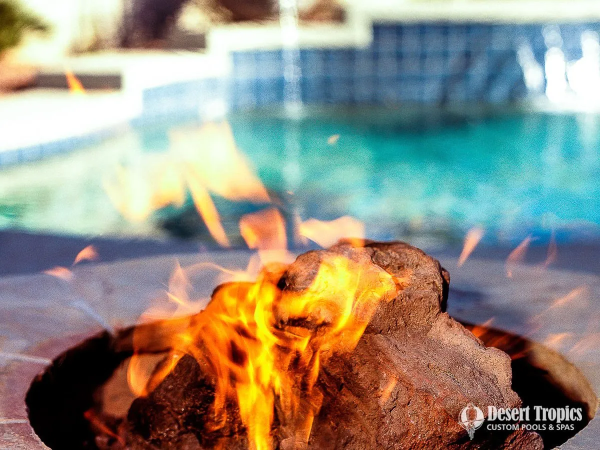 Add warmth and elegance to your pool with fire features. Desert Tropics Custom Pools designs fire pits, bowls, and features that elevate your outdoor space.